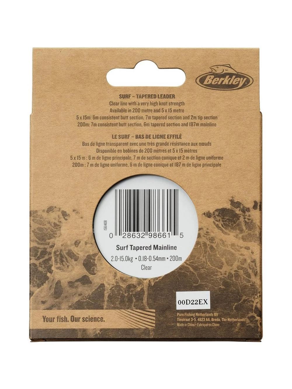 Omschrijving : Berkley Nautil Surf Monofilament Tapered 0,23-0,57 mm 200meter