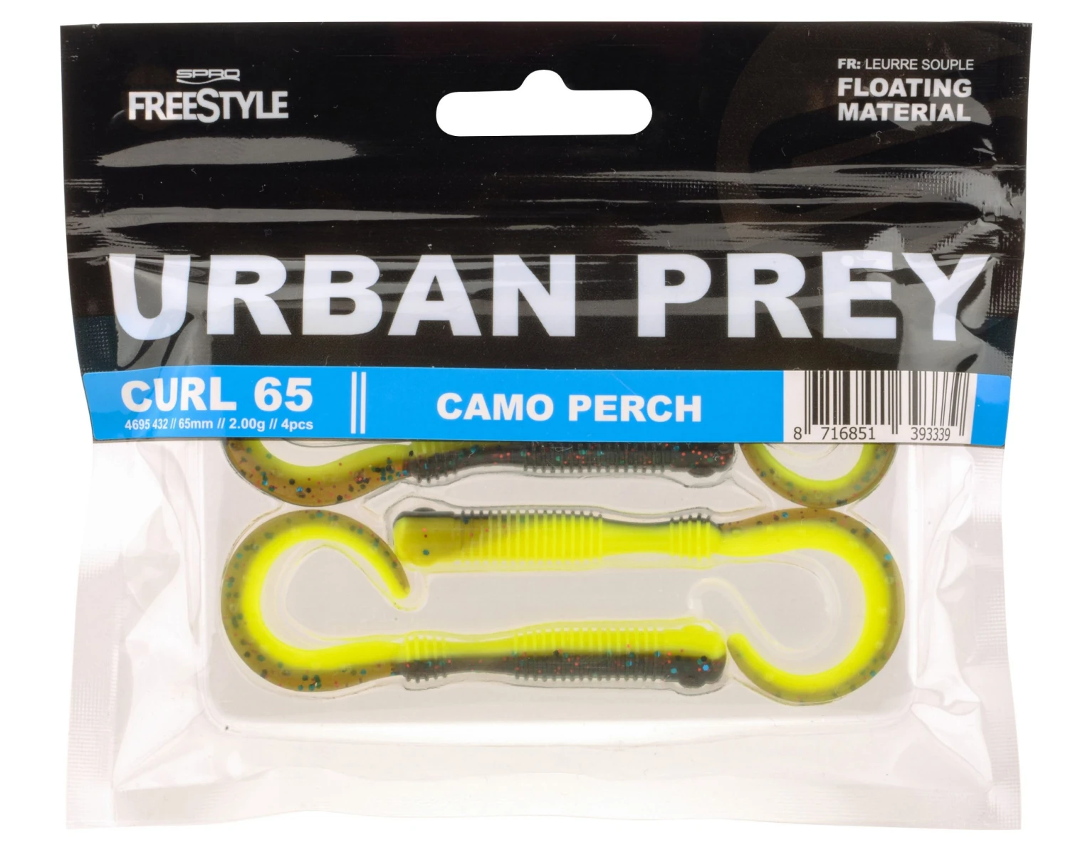 Door het intensieve en kritische ontwerp proces is Spro tot de ideale krulstaart gekomen. Deze Slug met krulstaart heeft een onweerstaanbare actie. Het slanke lijfje is enorm beweeglijk, tel daar de nerveuze trillingen van de krulstaart bij op en je snapt dat je met een topper voor baars en snoekbaars van doen hebt. Dankzij het drijvende materiaal is de Urban Prey Curl ook uitstekend te gebruiken met finesse technieken zoals de Bottom Jig of de Carolina Rig.