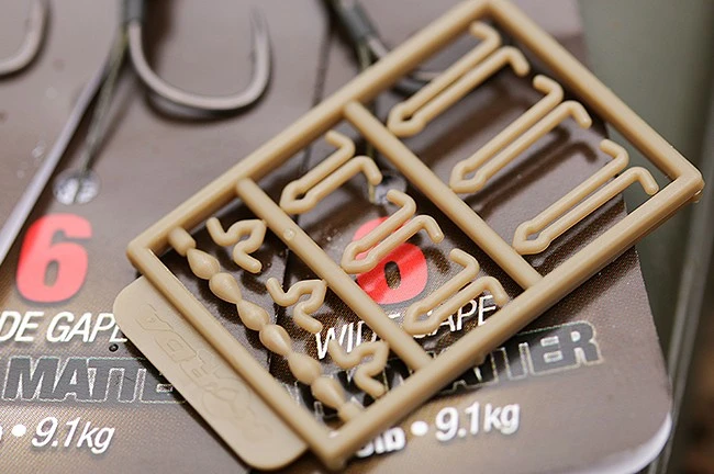 De Wide Gape haak zorgt voor een uitstekende inhaking en door de toevoeging van een kort stukje krimpkous zal de haak nog agressiever indraaien in de bek van de karper. Een klein stukje siliconenslang op de schacht van de haak zorgt ervoor dat de hair uit komt bij het optimale punt. Dit zorgt ervoor dat de haak super snel prikt.